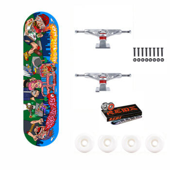 Vêtements, chaussures, accessoires, mais surtout spécialisé en matériels de skateboard. (Boards, trucks , roues, roulements, outils, visseries etc…)